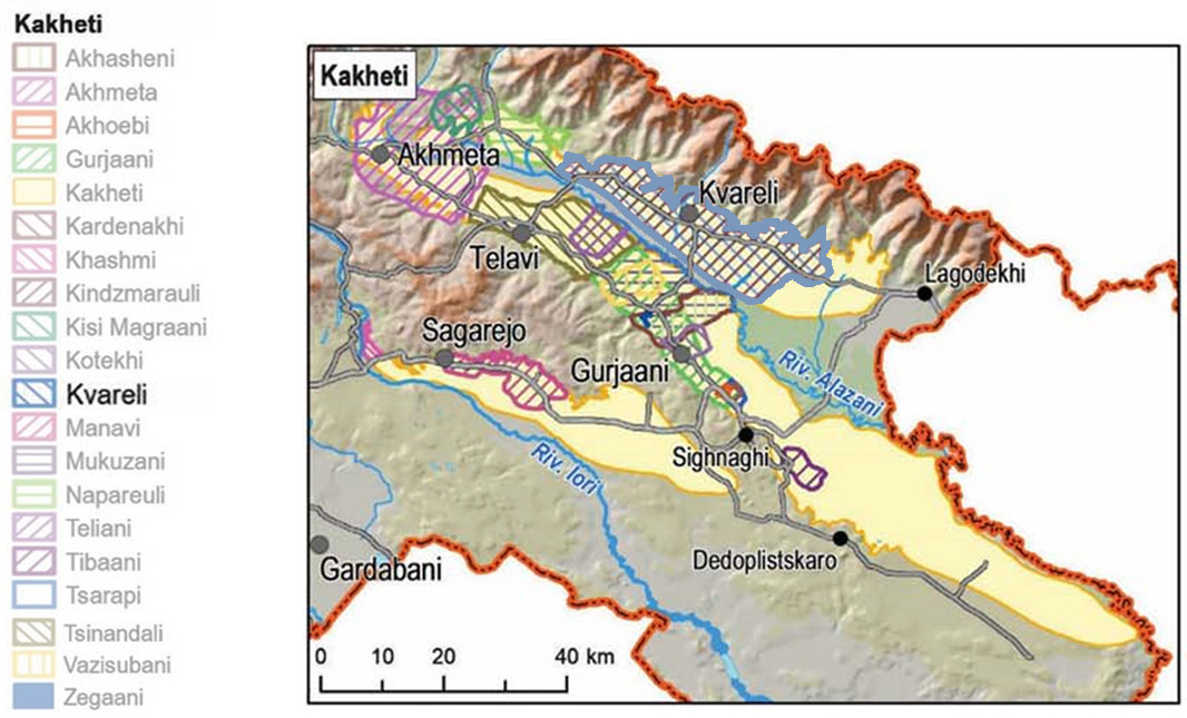 アラザニ川の左岸段丘にあるコーカサス山脈支脈の南斜面にあり、北側ではコーカサス山脈の南麓と接しています。